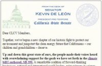 CLCV members received this special message in appreciation of your support for bold action on climate change and the California League of Conservation Voters from California Senate President Pro Tempore Kevin de León, author of California's new landmark climate and clean energy law, SB 350. DONATE